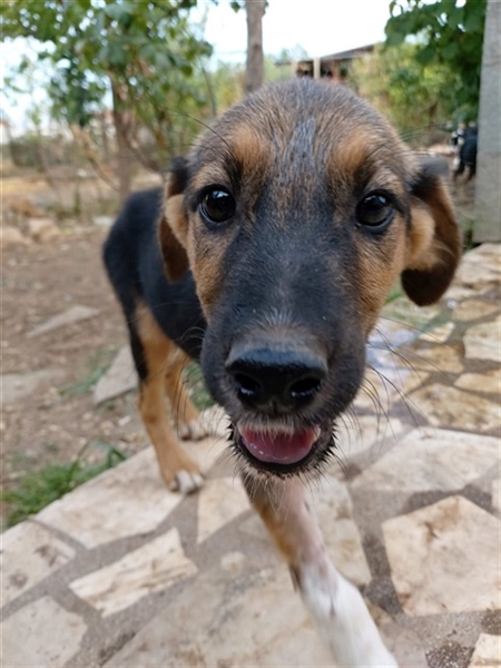 06.09.2024: Als wir Gass und seine Geschwister Avva, Hazel und Teddy zum ersten Mal trafen, waren sie sehr ängstlich. Sie waren zwar freundlich und wedelten, aber sie kamen nur näher, wenn es Essen gab. Um sie einzufangen und an einen sicheren Ort bringen zu können, musste eine:r der Tierschützer:innen hinter ihnen her rennen und sie aus ihrem Versteck zerren. Als sie daraufhin täglich Kontakt mit den Tierschützer:innen hatten, veränderte sich ihr Verhalten, und sie kamen immer näher auf die Tierschützer:innen zu. Inzwischen sind sie sehr entspannt im Umgang mit Menschen. Sie bellen vor Freude, wenn die Tierschützer:innen kommen, und sie weinen, wenn die Tierschützer:innen wieder gehen. Gass genießt Streicheleinheiten und fordert diese auch ein.