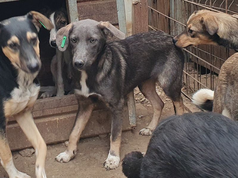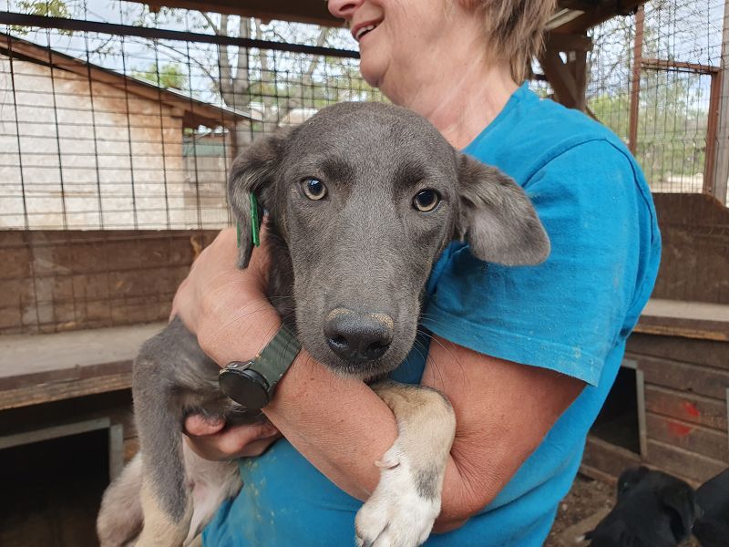 Die wunderschöne Flora ist etwas ganz Besonderes – ihr Fell zeigt eine seltene, zarte Kombination aus Grau, Hellbraun und Weiß. Sie kam als kleiner Welpe ins große Tierheim und musste ihre Kindheit bisher in einem winzigen Zwinger mit vielen anderen Junghunden verbringen. Trotz der Enge zeigt sie sich fröhlich, freundlich und sehr sozial. Menschenkontakt kennt sie kaum – und doch sucht sie ihn sofort, sobald jemand Zeit für sie hat. Auf dem Arm bleibt sie ruhig und genießt die Nähe sichtbar. Flora ist welpentypisch verspielt, neugierig und offen. Mit anderen Hunden kommt sie wunderbar aus, was bei der Vielzahl an Junghunden in ihrem Zwinger ein kleines Wunder ist, denn ständig ist Trubel und wenig Zeit zum Ruhen. Sie ist eine hübsche, aufgeschlossene Maus, die endlich ihre Chance bekommen sollte – auf ein Zuhause, in dem sie spielen, wachsen und einfach Hund sein darf.