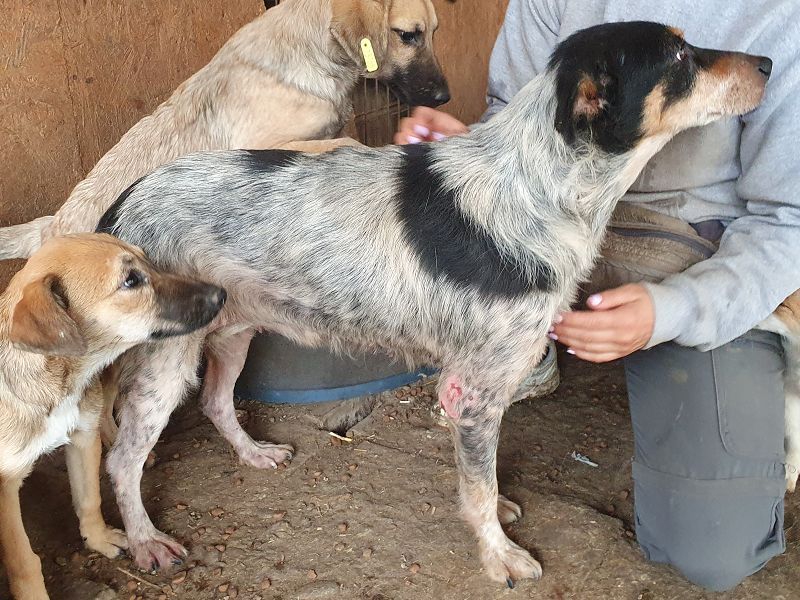 Diese wunderschöne Hündin mit Pointer-Fellzeichnung (weiß mit schwarzen Flecken) hat es besonders schwer: Nele lebt im völlig überfüllten Junghund-Zwinger – zusammen mit Welpen und kleinen, teils sehr fordernden Hunden. Sie selbst ist eigentlich ein ganz anderes Wesen: ruhig, verschmust, sensibel. Sie wartet oft ab, beobachtet erst – und sucht dann ganz sanft Kontakt zum Menschen. Der Zwingerstress setzt ihr sichtbar zu. Nele hat bereits Hautprobleme und kleine, offene Stellen, die im ruhigen Zuhause mit Pflege und Liebe schnell abheilen würden. Auch ihre leicht ausgeprägten O-Beine stören sie nicht – sie sucht keine Perfektion, sondern einfach einen Ort zum Ankommen. Mit etwa 47 cm hat sie eine ideale Größe und wäre eine wundervolle Begleiterin für ein ruhigeres Zuhause ohne andere Hunde. Sie möchte ihre Menschen gerne für sich – und ihnen dafür ihre ganze Zuneigung schenken.