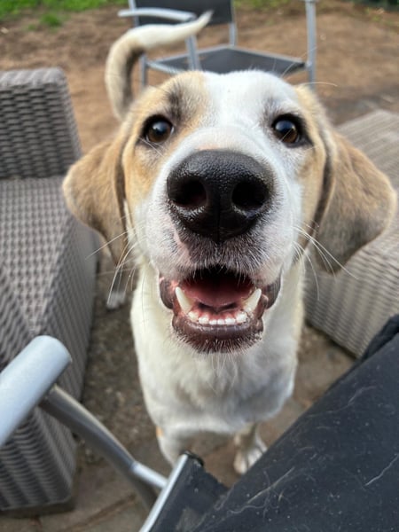 Klara ist eine etwa 55 cm große, freundliche, verschmuste, aufgeweckte und energiegeladene Hündin, die noch etwas unsicher in der Welt unterwegs ist. In neuen Situationen oder bei fremden Menschen reagiert sie vorsichtig und braucht ein wenig Zeit, um aufzutauen. Doch wenn sie die Menschen erst einmal kennt, sucht sie ihre Nähe, schmiegt sich an und genießt Streicheleinheiten.