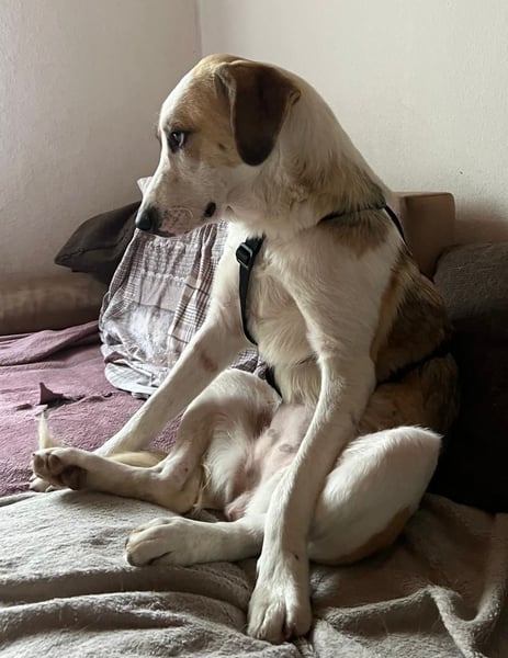 Klara zeigt territoriale Tendenzen: Wenn Besuch kommt oder ein unbekanntes Geräusch zu hören ist, meldet sie dies durch kurzes Bellen – bleibt dabei aber stets freundlich und hält lieber etwas Abstand, bis sie die Situation einschätzen kann. Aggressiv zeigt sie sich dabei nie. Nach ein paar Leckerlis wird sie neugierig und freundlich gegenüber Besuch, und die anfängliche Skepsis verfliegt nach kurzer Zeit. Hier hat Klara bereits Fortschritte gemacht, und mit liebevoller, klarer Führung sowie etwas Geduld wird sie bestimmt schnell lernen, in solchen Situationen entspannt zu reagieren. Stubenreinheit und Alleinebleiben muss sie allerdings noch lernen.
