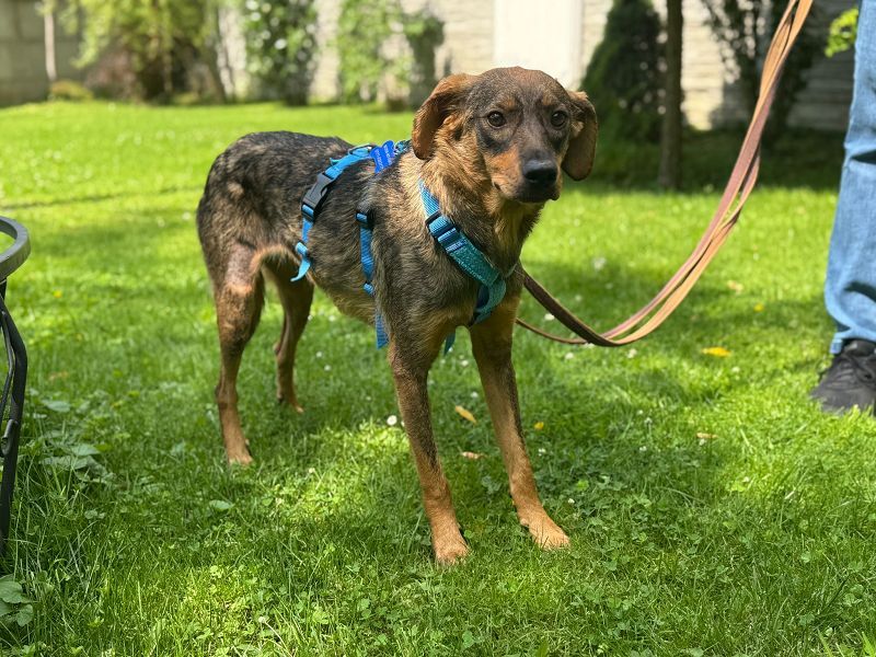 Fabienne kam Mitte Juli zu uns nach Rösrath – voller Unsicherheit, vorsichtig und zurückgezogen. Doch in den wenigen Wochen, die sie nun bei uns ist, hat sie bereits erstaunliche Fortschritte gemacht. Aus der schüchternen Hündin, die sich zunächst kaum aus ihrer Deckung wagte, wird nach und nach ein Hund, der Vertrauen fasst und sich öffnen möchte. Heute sucht Fabienne aktiv die Nähe zu ihren Bezugspersonen. Bleibt sie alleine in einem Zimmer, läuft sie in einen Raum, in dem sich eine Person befindet. Menschliche Nähe ist ihr also wichtig. Sie lässt sich gerne streicheln – und wenn man damit aufhört, macht sie sogar noch einen kleinen Schritt auf einen zu, als wollte sie sagen: „Bleib noch ein bisschen.“ Diese kleinen Momente zeigen, wie viel Potenzial in ihr steckt und wie sehr sie bereit ist, sich auf eine neue Zukunft einzulassen. Täglich begleitet Fabienne ihre Menschen nun auf Spaziergängen und lernt nach und nach alles kennen. Trotz aller Fortschritte braucht Fabienne Menschen mit Hundeerfahrung – Menschen, die wissen, wie man ein sensibles Wesen, wie sie, mit Geduld, Einfühlungsvermögen und der richtigen Portion liebevoller Förderung begleitet. Beim Spielen vergisst sie all ihre Ängste – dann tobt sie voller Freude und ist ganz sie selbst. Wer ihr die Zeit gibt, die sie braucht, bekommt eine unglaublich treue und liebevolle Begleiterin, die ihre Dankbarkeit in leisen, aber tief berührenden Gesten zeigt.