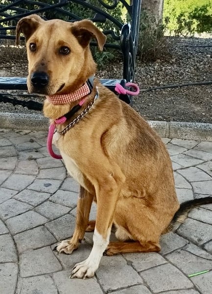 Dieser Hund wurde am 29. März 2022 von einer Spaziergängerin in Roquetas de Mar gefunden. Sie informierte eine Anwohnerin,