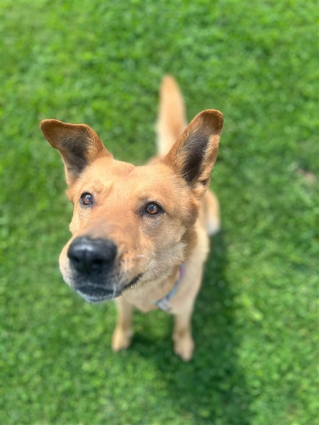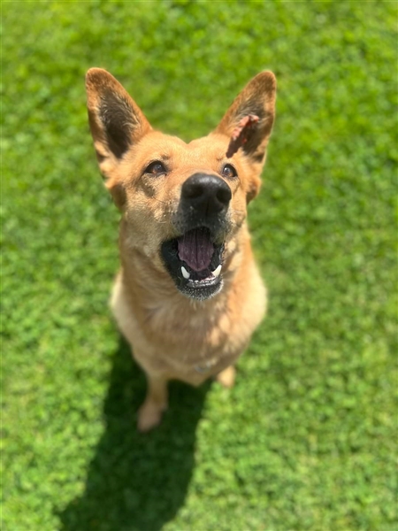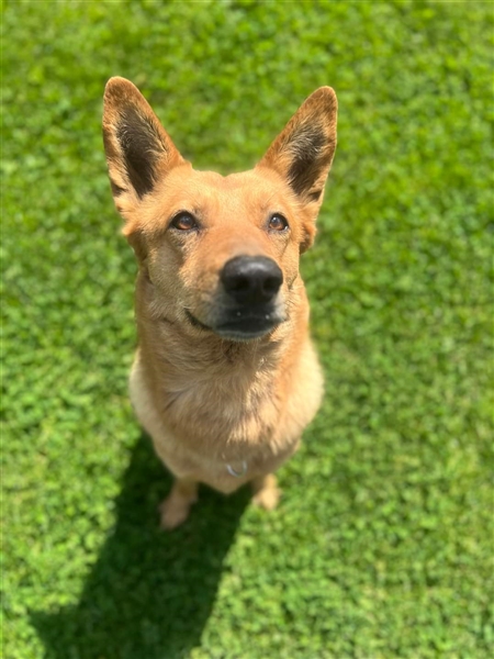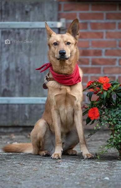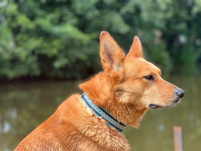 Der wunderschöne, rotbraune Rüde ist ein sehr stolzer, mental starker und souveräner Schäferhundmischling.