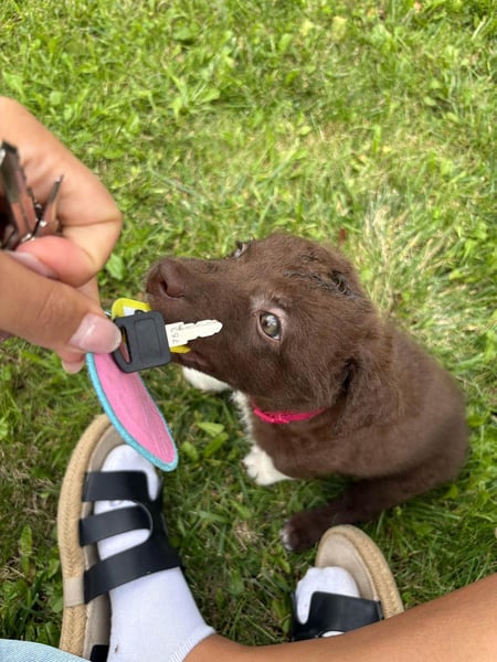 Natürlich muss Roua wie jeder Welpe noch das Hunde-Einmaleins lernen: stubenrein werden, Leine laufen, allein bleiben, Autofahren – all das steht ihr noch bevor. Aber sie bringt die besten Voraussetzungen mit, um sich zu einer ausgeglichenen, fröhlichen und treuen Begleiterin zu entwickeln.