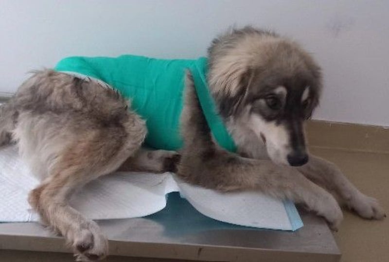Milo wurde im Januar 2025 schwer verletzt aufgefunden. Wie die große Wunde auf seinem Rücken entstanden ist, wissen wir nicht – möglicherweise wurde sie von anderen Hunden verursacht.