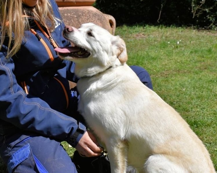 Aber erstmal ein bisschen mehr zu mir. Bei Menschen bin ich anfangs eher ein wenig schüchtern, wenn ich mich aber erstmal darauf einlasse, was meistens bereits nach kurzer Zeit geschieht, schmelze ich dahin und freue mich sehr über den Kontakt, die Streicheleinheiten und Liebkosungen. An der Leine laufen kann ich auch schon ganz gut, aber wie Ihr wisst, fällt ein Meister selten vom Himmel und wir sollen immer wieder trainieren, damit ich darin auch weiterhin so gut bleibe! Mit anderen Hunden verstehe ich mich ebenfalls. Am besten mit ruhigen, nicht impulsiven Hunden, egal ob es Rüden oder Hündinnen sind. Wenn mir einer zu ungestüm scheint, gehe ich ihm aber lieber aus dem Weg.