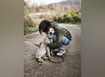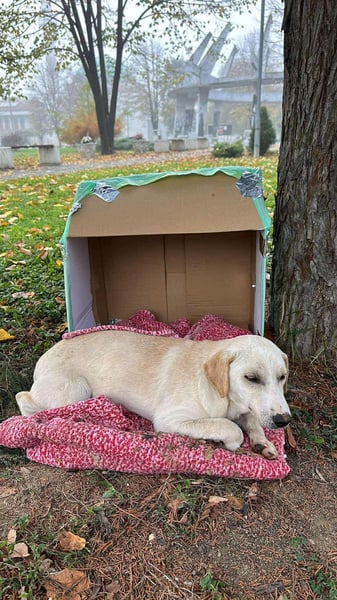 Sie lebte über einen längeren Zeitraum allein in einem Park. Dort suchte sie Schutz in einem einfachen Pappkarton, der ihr als Unterschlupf diente. Wie sie dorthin kam, wissen wir nicht - vermutlich wurde sie ausgesetzt. Trotzdem begegnet Lea dem Menschen mit großer Freundlichkeit und Sanftmut.