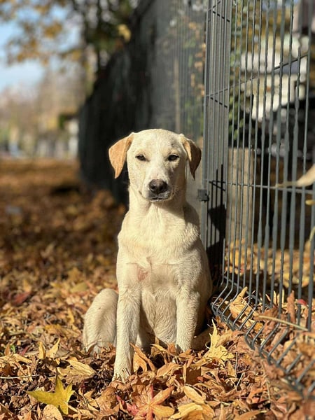 Lea ist eine zarte beige Mischlingshündin mit einem Herzen aus Gold.