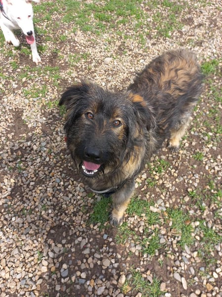 Grey wurde zusammen mit 3 anderen ein wenig kleineren Welpen mitten im Winter, zwischen zwei Dörfern im Wald ausgesetzt. Sie näherten sich einem Parkplatz als eine Volontärin, die da zufälligerweise vorbeifuhr, sie entdeckte. Es war ihr schnell klar, dass die Chancen überfahren zu werden viel grösser waren als Futter zu finden und nahm sie mit. Die Rettung kam wirklich in letzter Minute, denn sie waren sehr unterernährt, dehydriert, unterkühlt und voller Flöhe und Parasiten. So kamen sie zu uns in Pflege und wartet brav auf ein eigenes Zuhause.