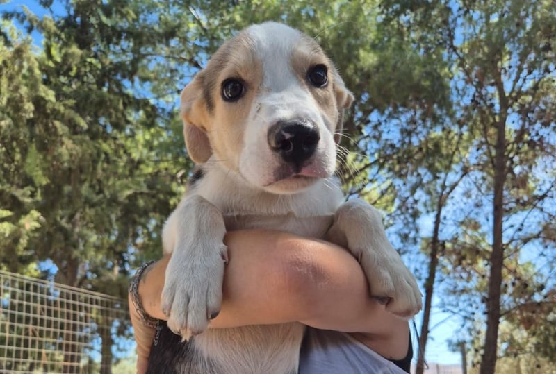 Gemeinsam mit seinen Geschwistern Ulisse und Shilla wurde ZEUS im heißen Hochsommer an einer Landstraße ausgesetzt.