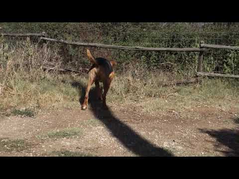 Kitsos kommt prima mit anderen Hunden aus. Als er durch den großen Freilauf geführt wurde, ließ er sich sogar von Brackenmädchen Poppy zum Spiel auffordern.