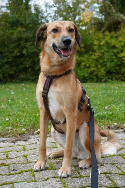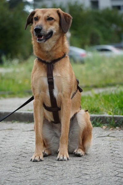 In der Wohnung ist sie entspannt, schläft viel, beobachtet neugierig – und fühlt sich bereits nach kurzer Zeit heimisch. Kleine Alltagsgeräusche, wie ein Niesen oder ein herunterfallender Gegenstand, lassen sie manchmal noch erschrecken, aber sie fasst sich schnell wieder. Draußen ist sie noch etwas unsicher, zieht an der Leine, möchte bestimmten Situationen ausweichen. Doch mit jedem Spaziergang wächst ihr Vertrauen. Besonders, wenn die Umgebung vertraut ist und ihre Bezugsperson sie begleitet, blüht sie regelrecht auf. Am Abend, wenn es ruhig ist, läuft sie oft schon ganz entspannt und wartet brav an Ampeln.