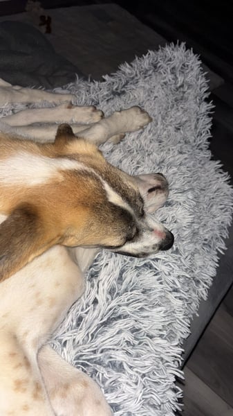 Da sie allein auf der Straße gefunden wurde, kennen wir ihre Eltern nicht und können zur Rasse keine genauen Angaben machen. Wir schätzen jedoch, dass Penny mittelgroß werden wird.