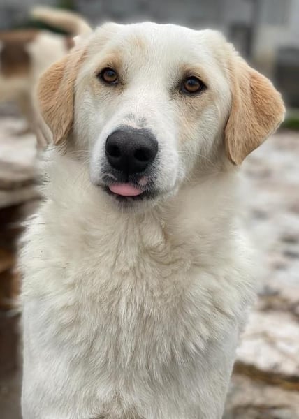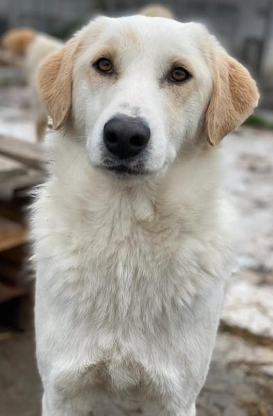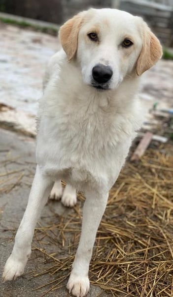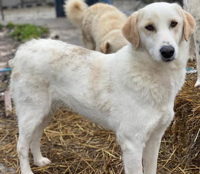 Besonderheiten: evtl. Herdenschutzhund-Mix, keine Rute