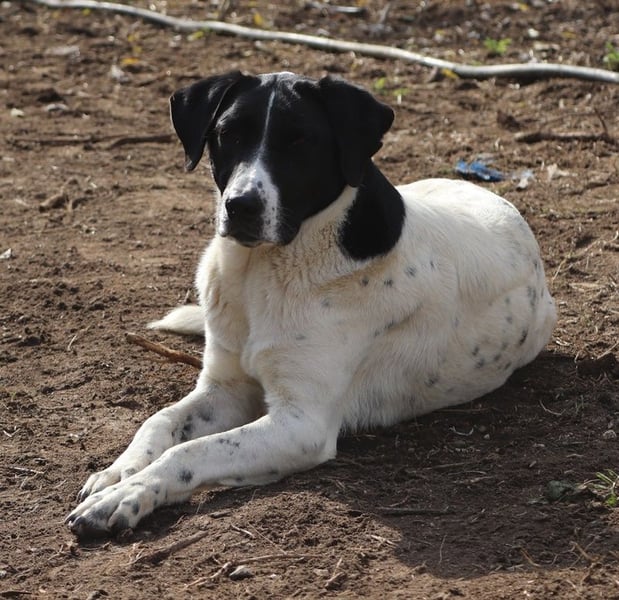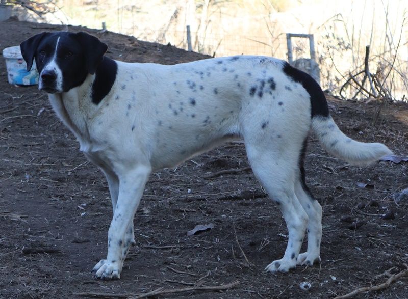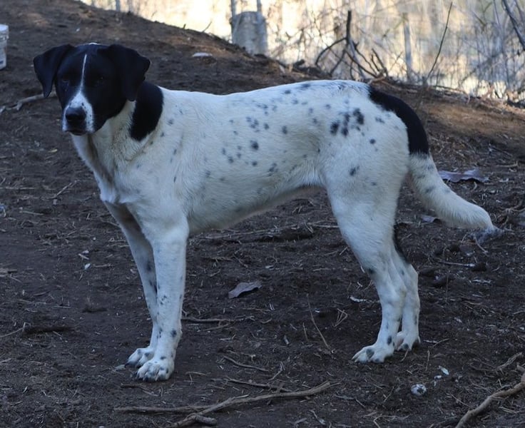 Foyala ist eine sehr liebe, neugierige und aufgeweckte Hundedame auf vier Pfoten, die aufmerksam ihre Umgebung erkundet und ihre Pfleger und Pflegerinnen herzlich willkommen heißt. Zudem ist Foyala auch gegenüber anderen Hunden, mit denen sie gemeinsam vor Ort lebt, verträglich. Noch dazu lädt das Zusammenleben zu Spieleinheiten ein, die sie alterstypisch gern abhält. Ausgesprochen hübsch ist sie in Schwarz und Weiß gekleidet, so trägt Foyala eine maskenartige Zeichnung ihres Kopfes und süße Punkte um die Nase herum sowie an ihren Pfötchen. Besonders sind die vereinzelten schwarzen Flecken an ihrem Körper, welche ganz verschieden angeordnet sind.