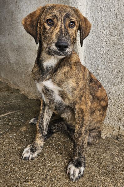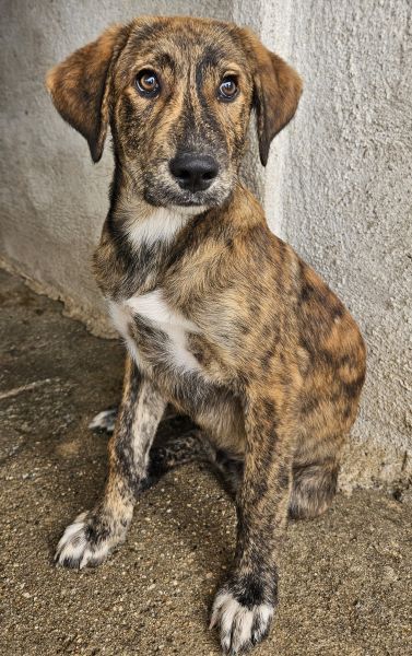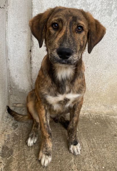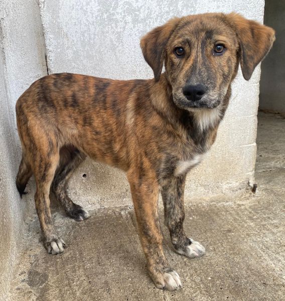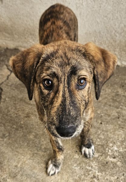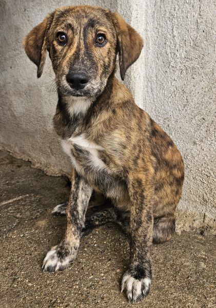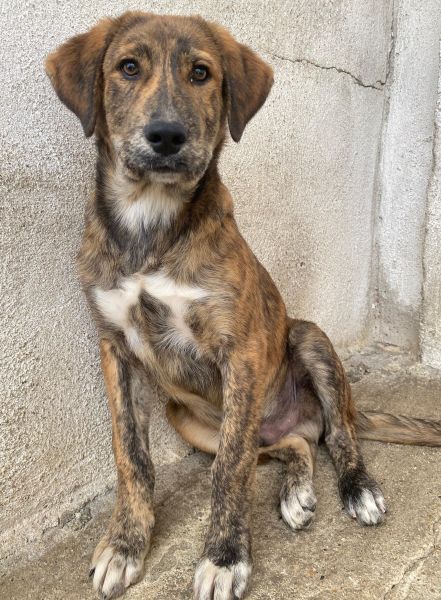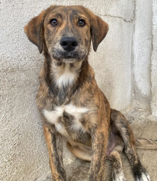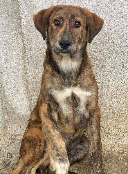 Fiyero ist ein besonders hübscher junger Rüde mit einem wunderschönen, braun-schwarz gestromten Fell, das im Sonnenlicht schimmert und ihn zu einem echten Hingucker macht. Sein sanfter, wacher Blick verrät Neugier und Freundlichkeit und auch ein kleines bisschen Sehnsucht nach einem Menschen, der ihn liebt.