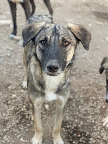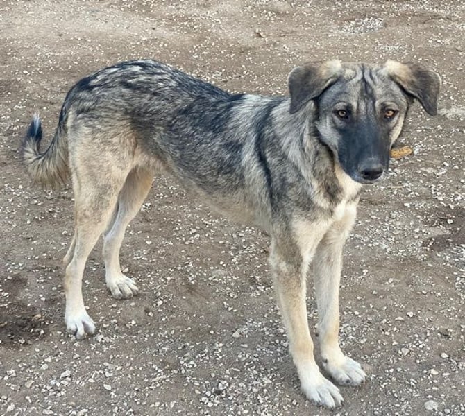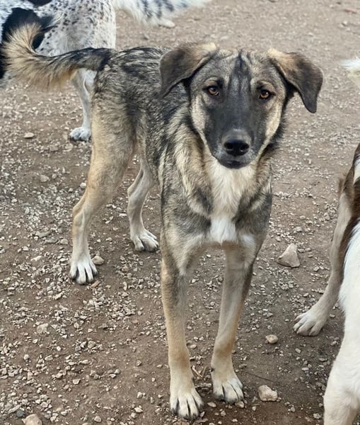 Erwin wurde gemeinsam mit seinen Geschwistern und seiner Mutter auf einem Friedhof in Serres gefunden. Die Mutter hatte sich wahrscheinlich dorthin zurückgezogen, um ihre Welpen in Ruhe auf die Welt zu bringen. Glücklicherweise wurde die junge Familie zeitnah von unseren Helferinnen entdeckt und konnte nach einigen Mühen eingefangen und in die Obhut einer Pflegestelle gebracht werden. Erwin und seine Geschwister leben inzwischen bei uns im Tierheim und sind schon groß geworden. Daher wünschen wir uns sehr, dass jedes einzelne Familienmitglied nun bald in ein eigenes, liebevolles Zuhause für immer reisen darf.