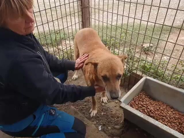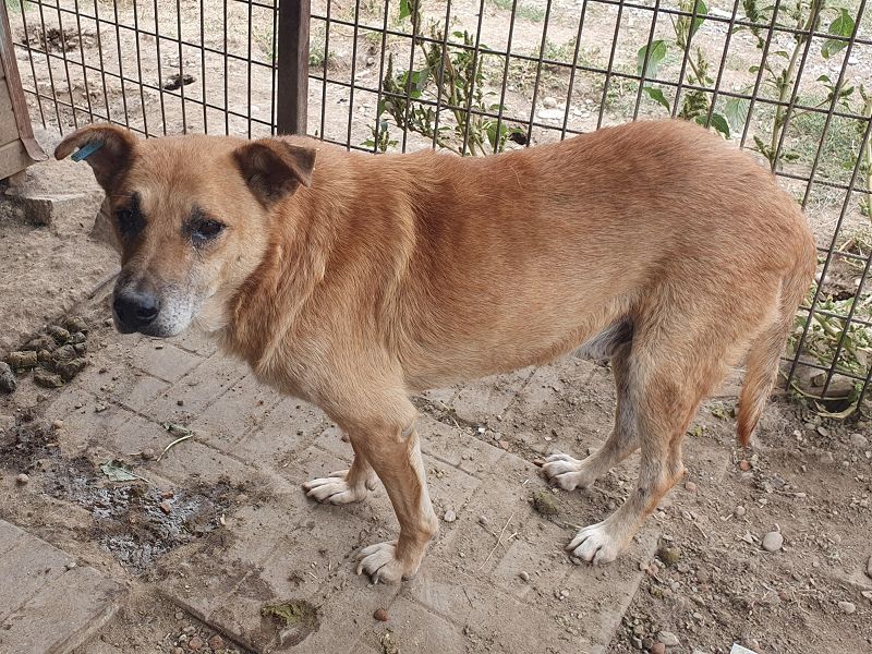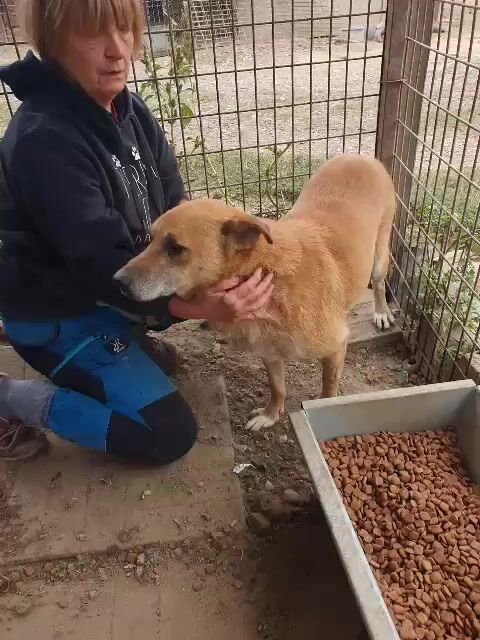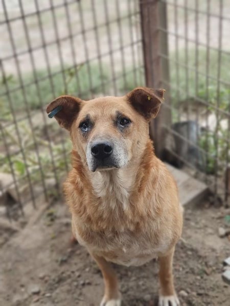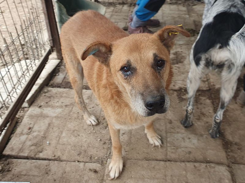 Cougar– ein sanfter, hellbrauner Rüde mit treuen Augen, der noch so viel Liebe zu verschenken hat. Seit mindestens 2022 sitzt dieser liebe Senior im Tierheim, und schon damals war er vermutlich etwa sechs Jahre alt. Heute, mit rund neun Jahren, wartet er immer noch geduldig – ruhig, freundlich und bescheiden. Kaum auszumalen, was das für so eine liebe Seele bedeutet, was es mit einem Hund macht, so lange ohne sicheres zu Hause, ohne Familie zu sein. Cougar zeigt sich im Zwinger abwartend und gelassen. Streicheln lässt er sich in Ruhe, komplett fallen lassen konnte er sich dabei aber nicht mehr – vermutlich hat er über die Jahre im nassen, lieblosen Zwinger eine gewisse Vorsicht aufgebaut. Denn als wir Ihn mit dem Zollstock messen wollten, wurde er unsicherer und unruhig – wusste nicht genau wohin mit sich.