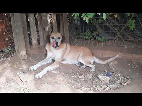 Auch wir sind bisher immer nur mal kurz zu den Hunden in diese Gehege gegangen. Im ersten Gehege ist der Rüde Kleon zusammen mit Fuxi. Einen Alarm hat er immer gemacht, wenn wir in der Nähe waren. Er hing am Zaun und hat wirklich alles gegeben, um auf sich aufmerksam zu machen.