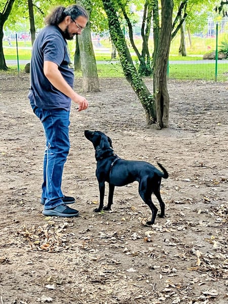 Sie kennt bereits mehrere Kommandos wie "Sitz", "Nein", "Aus" und "Pfote" und es macht ihr Spaß auch Neues zu lernen. An der Leine läuft sie sehr ordentlich, auch wenn sie das Geschirr noch etwas skeptisch betrachtet. In der Stadt kommt sie gut zurecht, solange sie nicht mit zu viel Verkehr und Lärm konfrontiert wird. Auf dem Land ist sie entspannter und genießt Spaziergänge besonders.