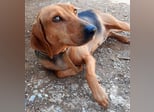 Ada hat das für Bracken typische sanfte Wesen. Als wir sie in einen kleinen Freilauf holten, schnüffelte sie erst ein wenig herum um sich dann, ganz bescheiden, in unsere Nähe zu legen. Aber es dauerte nicht lange, sie wurde mutiger und forderte schon bald die von uns mitgebrachten Leckerlis ein und ließ sich streicheln.