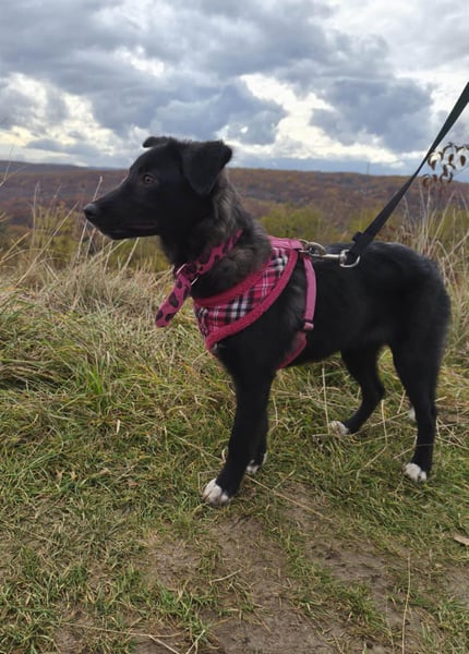 Beim Spazierengehen läuft sie sehr gut an der Leine, obwohl sie, wie jeder Hund ruhigere Gegenden bevorzugt. Nur wenn sie sich erschreckt oder Angst bekommt, bleibt sie kurz stehen oder zieht leicht. Im Freilauf reagiert sie auf den Rückruf schon ganz gut, solange sie sich sicher fühlt. Wenn sie Angst bekommt, reagiert sie nicht sofort, sondern sucht Schutz auf Distanz.