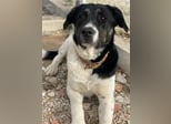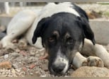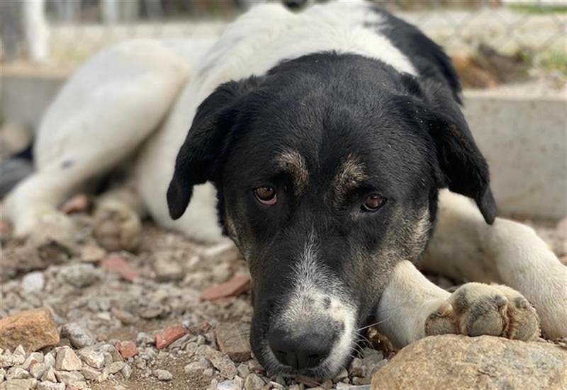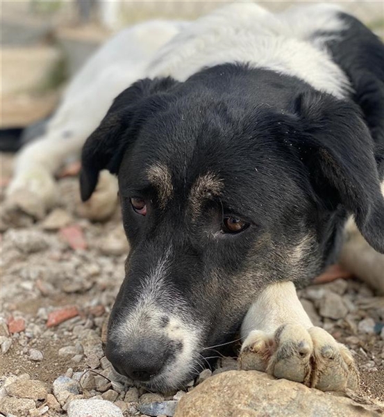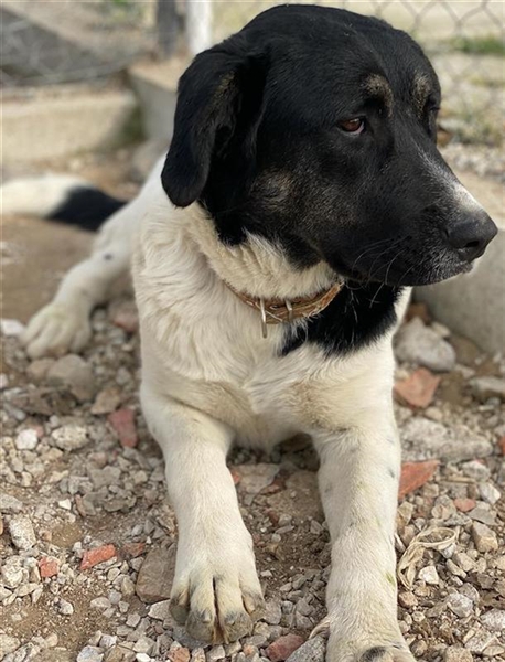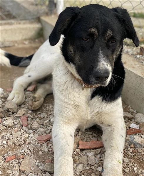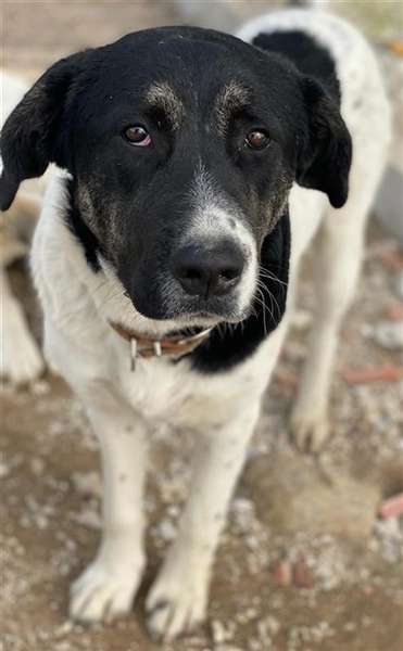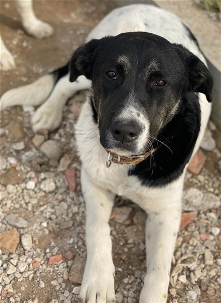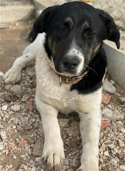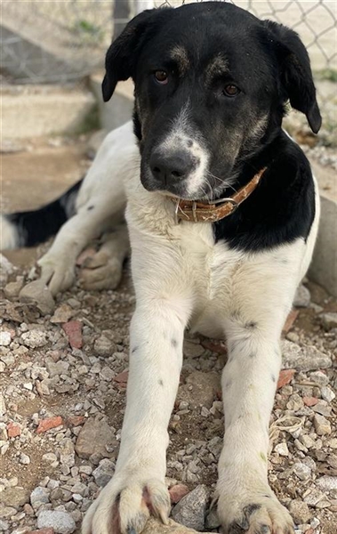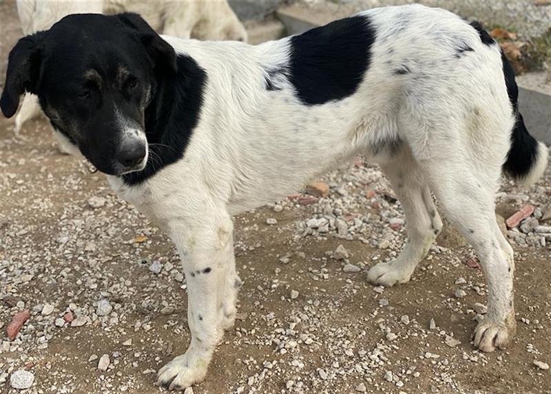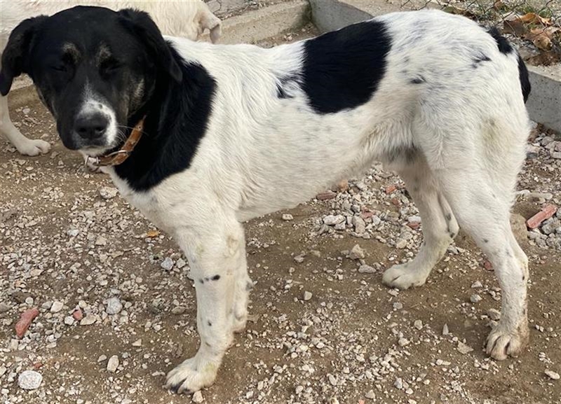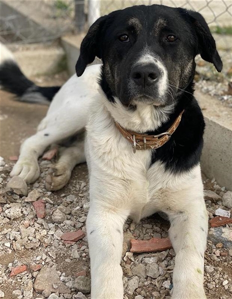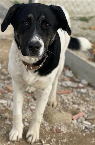 Thanio lebte sein bisheriges Leben zusammen mit einer Hündin auf den Straßen des Zentrums von Serres. Beide wurden dort von den Einwohnern gefüttert und sind daher an Menschen gewöhnt. Der bildschöne Thanio ist ein Traum von einem Hund. Er hat kuschelweiches, schwarz-weißes Fell, niedliche große Schlappohren und warme, braune Augen.