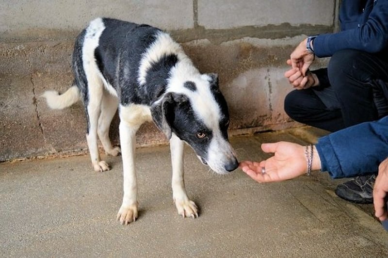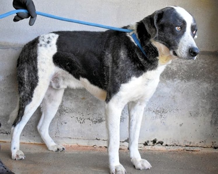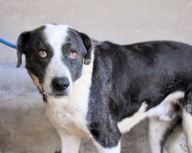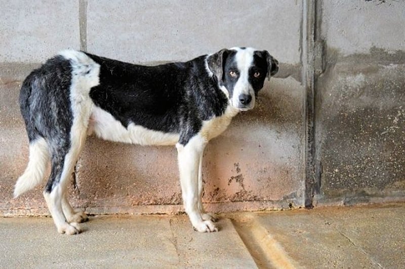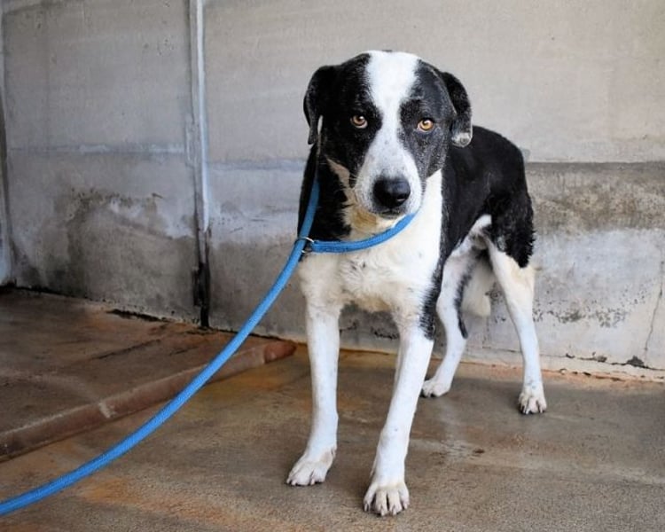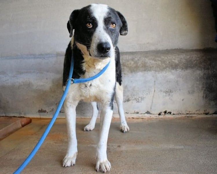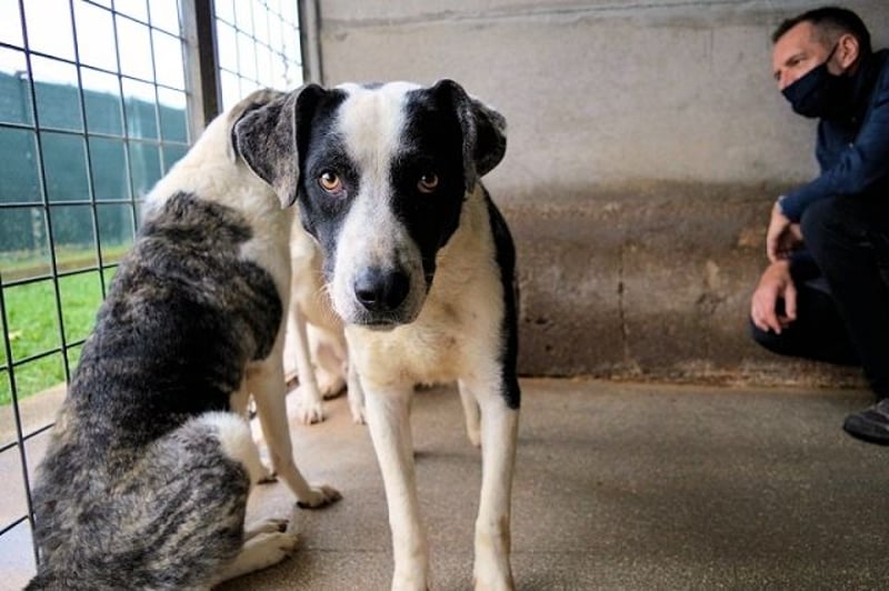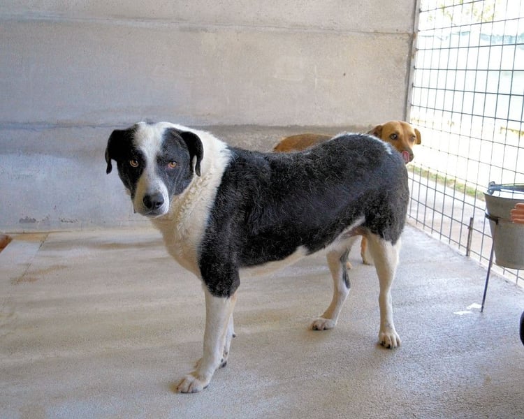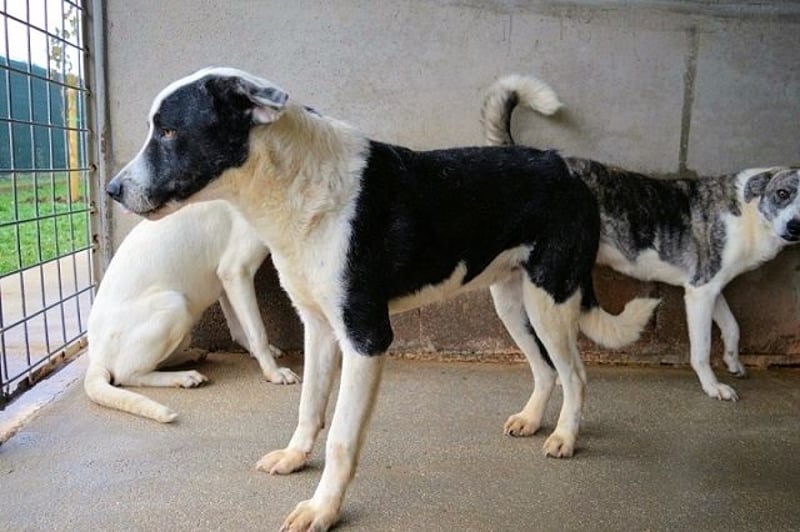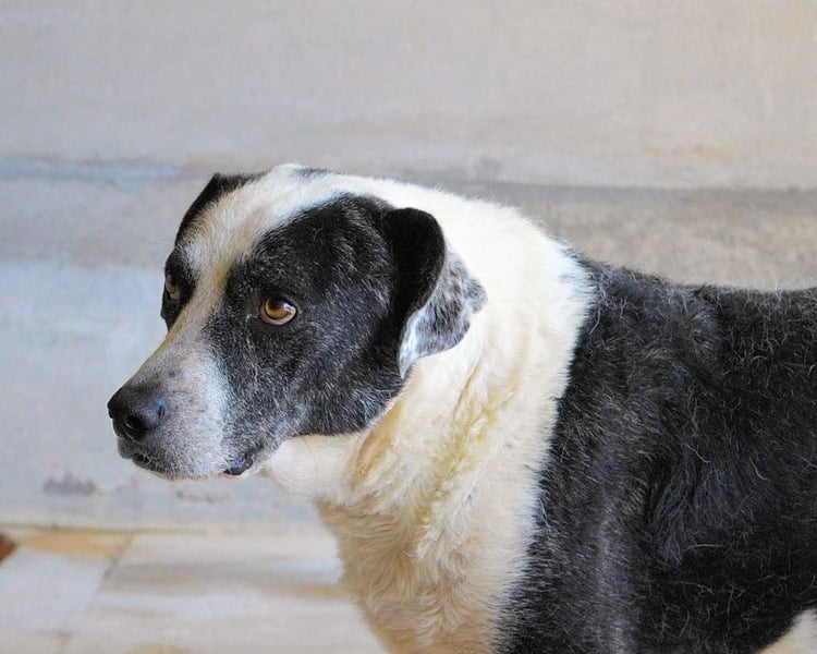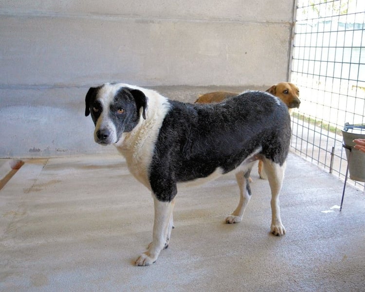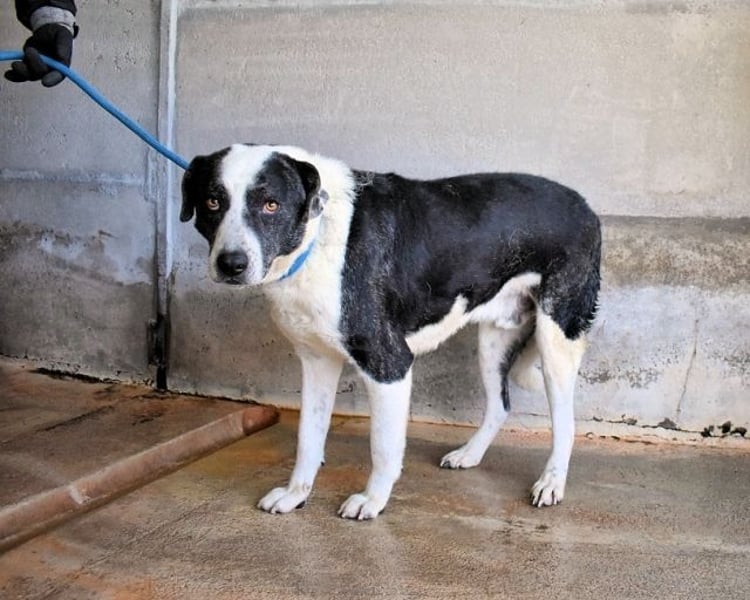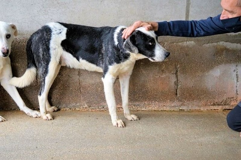 Dann war es so weit und die Tierschützer besuchten Oldrich. Er bemühte sich so sehr, sich ruhig, freundlich und fröhlich zu präsentieren. Doch die lange Zeit der Isolation zeigte ihre Spuren und Oldrich wurde schüchtern. Ruhig und bewegungslos beobachtete Oldrich die Besucher. Aber es schimmerte auch der freundliche Oldrich durch. So ließ er sich nach ruhiger Ansprache die Leine umlegen und sich vorsichtig streicheln. Bei unabsichtlich schnellen Bewegungen der Tierschützer zuckte Oldrich schreckhaft zusammen, aber ohne abwehrendes Verhalten zu zeigen. Der hübsche schwarz-weiße Oldrich braucht Ihre Hilfe, liebe Leserinnen und Leser. So gehört unser vierjähriger Schützling zu den eher „unsichtbaren Hunden“ im Lager. Ein Hund, der nicht durch besondere Merkmale hervorsticht. Oldrich ist einfach da und versucht, den schwierigen Alltag in der Betonbox täglich zu meistern. Ebenfalls ist Oldrich kastriert und mit anderen Hunden verträglich. Wir vermuten, dass er eine leichte Prognathie hat, die ihm aber keinerlei Probleme bereitet.