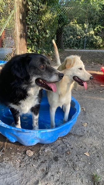 Er freut sich über Besuch, kommt von sich aus auf die Helferinnen zu und genießt jede liebevolle Berührung. Carmine ist ein freundlicher, zugänglicher Rüde, der die Nähe zum Menschen nicht nur zulässt, sondern sich danach sehnt. Besonders schön war der Moment, als er zum ersten Mal den Tiber sah – statt Zwingergittern plötzlich Wasser, Weite, Wind. Carmine zögerte nicht lange, stapfte hinein und ließ sich zufrieden treiben. Es war, als hätte sein Körper begriffen: Das hier ist Leben.