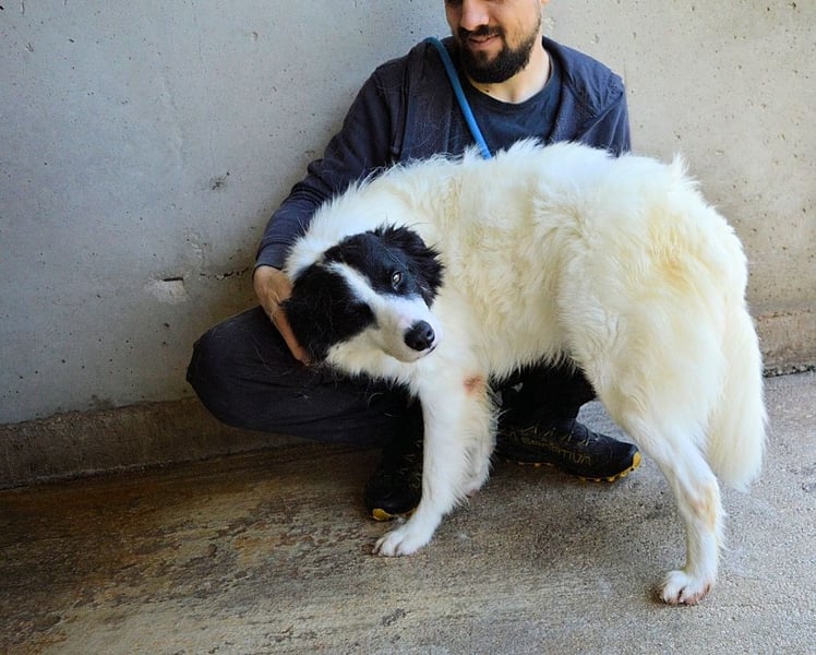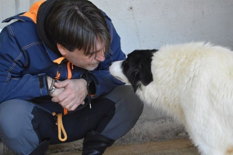 An diesem Tag stand ein Mensch vor meinem Zwinger. Tierschützer heißt er wohl. Er hat nichts gesagt, nichts gefordert, nichts getan, was mich hätte erschrecken können. Er war einfach da. Und als die Blätter sich bewegten, bewegte ich mich auch – langsam, wie immer, aber ohne mich zu verstecken. Er streckte die Hand nicht sofort aus. Er wartete, bis ich wirklich da war. Und dann ließ ich es zu: ein vorsichtiges Streicheln über meinen Kopf. Ich bin nicht die Hündin, die sofort freudig vorprescht. Ich renne nicht auf Menschen zu und ich fordere keine Nähe ein. Aber wenn jemand ruhig bleibt… wenn mir Zeit gegeben wird… dann öffne ich mich. Nicht weit, nicht laut – aber ehrlich. Genau so lief es an diesem Tag. Keine Unsicherheit mehr, sobald die erste Berührung da war. Kein Zurückweichen. Ich stand da, und ich ließ mich streicheln. Es war einfach gut.