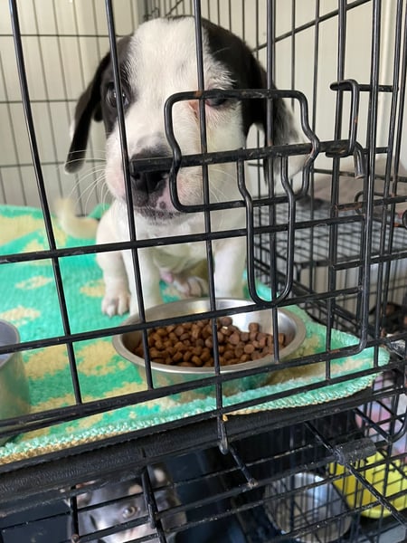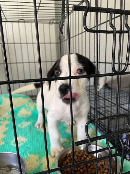 Tobi wurde in einer in einem Karton vor einem Geschäft in der Stadt ausgesetzt.