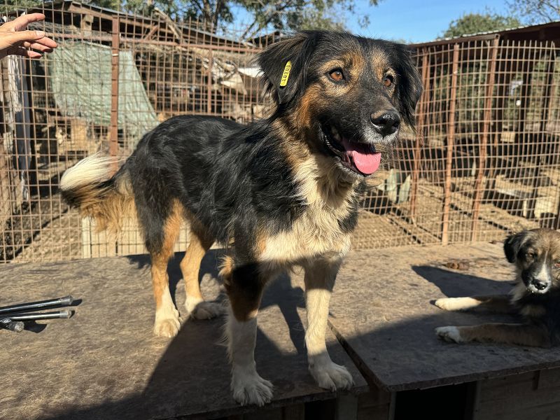 Maureen ist eine wunderschöne mittelgroße Mischlingshündin mit dreifarbigem, langem Fell und einem ganz freundlichen Charakter. Als wir in den großen Gruppenzwinger kamen, freute sie sich so sehr, dass sie sofort auf eines der Hüttendächer sprang, um bloß nicht übersehen zu werden und auch selbst alles sehen zu können. Sie war dabei aber nicht aufdringlich, sondern konnte auch gut abwarten, bis wir uns Zeit für sie nahmen. Sie zeigte sich die gesamte Zeit, als wir dort waren, superfreundlich und aufgeschlossen. Und auch mit den anderen Hunden war sie verträglich und auch wenn mal ein anderer Hund unsere Leckerchen bekam, zeigte Maureen keinen Futterneid. Wir haben keine Ahnung, wieso Maureen ins Tierheim Bucov in Rumänien kam, aber wir sind uns sicher, dass sie bei ihren Menschen eine wundervolle Begleiterin wäre.
