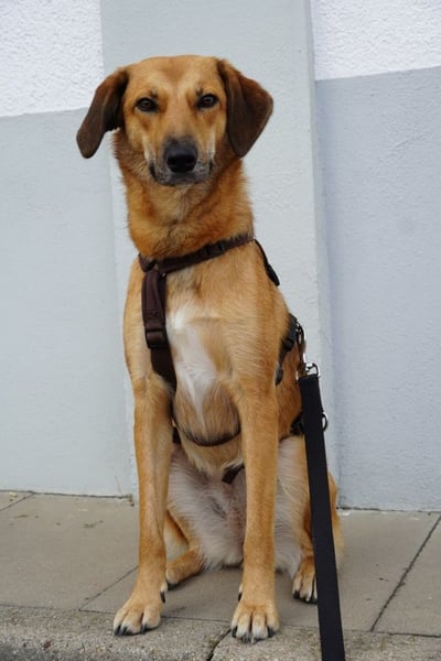 In der Wohnung ist sie entspannt, schläft viel, beobachtet neugierig – und fühlt sich bereits nach kurzer Zeit heimisch. Kleine Alltagsgeräusche, wie ein Niesen oder ein herunterfallender Gegenstand, lassen sie manchmal noch erschrecken, aber sie fasst sich schnell wieder. Draußen ist sie noch etwas unsicher, zieht an der Leine, möchte bestimmten Situationen ausweichen. Doch mit jedem Spaziergang wächst ihr Vertrauen. Besonders, wenn die Umgebung vertraut ist und ihre Bezugsperson sie begleitet, blüht sie regelrecht auf. Am Abend, wenn es ruhig ist, läuft sie oft schon ganz entspannt und wartet brav an Ampeln.