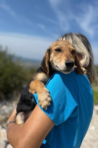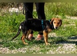 Franzl ist ein Jagdhundmix und wird vermutlich mittelgroß. Er freut sich über den Besuch einer passenden Hunde(halter)schule, in dem ihr gemeinsam das Hunde-Einmaleins lernen (oder auffrischen) und euch noch besser kennenlernen könnt.