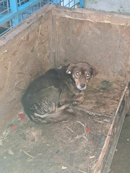 Ganz eng zusammen gekrümelt, lag er in einer der dreckigen Boxen und traute sich kaum aufzuschauen. Ganz klar das man dem hübschen Hundebuben aus dieser ausweglosen Situation helfen musste.