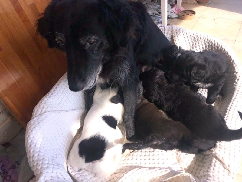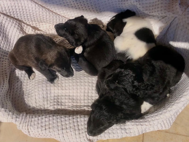 Unsere wunderbare Hündin Mia – ein intelligenter und sanftmütiger Mix aus Berner Sennenhund, Labrador und Border Collie – hat uns am 5. März mit fünf gesunden, quirligen Welpen beschenkt.