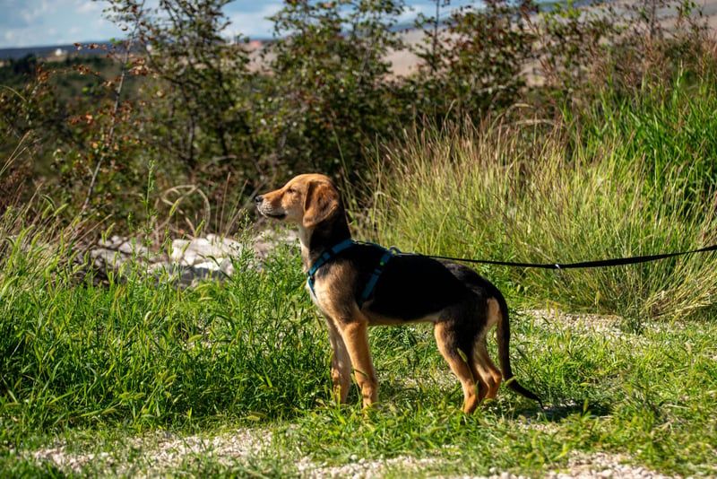 Franzl ist ein Jagdhundmix und wird vermutlich mittelgroß. Er freut sich über den Besuch einer passenden Hunde(halter)schule, in dem ihr gemeinsam das Hunde-Einmaleins lernen (oder auffrischen) und euch noch besser kennenlernen könnt.