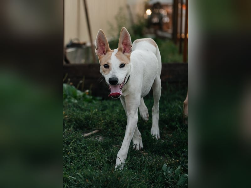 Bonni wurde ungefähr im Februar 2025 in Russland geboren und ist eine mittelgroße Hündin mit einer Schulterhöhe von etwa 53 Zentimetern. Sie wiegt rund 15 Kilogramm und ist ein zarter, eleganter Mischling. Bonni ist bereits kastriert, geimpft und gechippt und hat alle notwendigen Impfungen erhalten, sodass sie bestens auf ihr neues Leben vorbereitet ist.