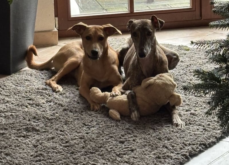 Juna und Pipa sind zwei entzückende junge Damen (sie werden an Weihnachten 2025 6 Monate alt sein), die zusammen mit ihren Geschwistern in der Nähe des Tierheims in Huelva gefunden wurden. Einige der lustigen Gesellen haben bereits nette Familien in Spanien für sich gewonnen, Nune, eine weitere kleine Dame aus dem neugierigen Gewusel, reist im November nach Deutschland zu ihrer Pflegefamilie. Aber Juna und Pipa sitzen im Zwinger und müssen die Welt, die sie so gern erobern würden, weitgehend durch Gitterstäbe betrachten.