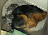 Der intakte Rüde ist jünger nicht ganz so verschmust aber auch anhänglich, er schmust lieber mit der Hündin.