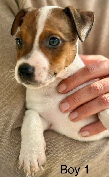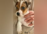 Die 4 braun-weißen Welpen sehen aus wie ihre Mama und werden ausgewachsen vermutlich eine ähnliche Größe erreichen - aktuell wiegen sie um die 3kg. Bruder Toby wirkt dagegen wie ein Kuckuckskind und wiegt aktuell um die 6kg - er wird wohl etwas größer werden als seine Geschwister (geschätzt um die 15kg ausgewachsen, aber die Angabe ist natürlich ohne Gewähr ;-)).