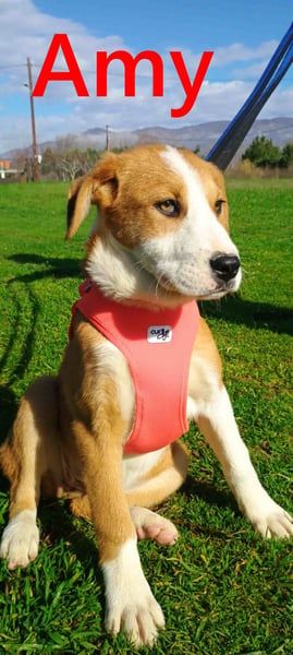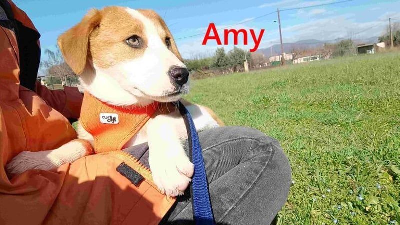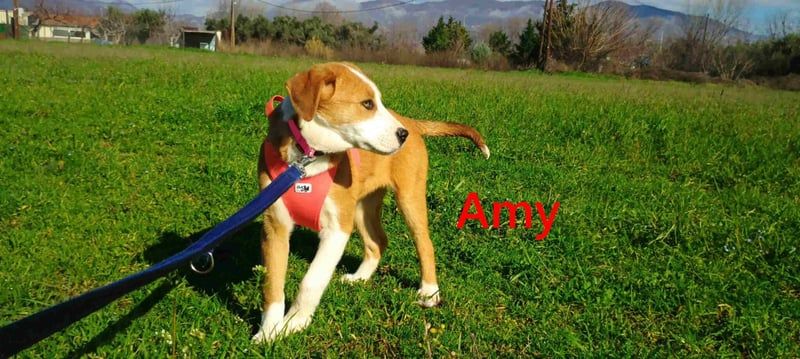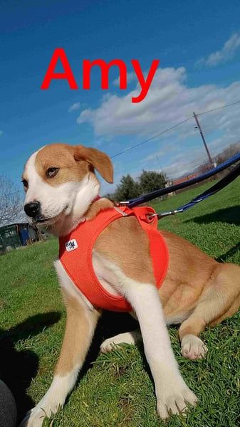 Amy ist ein sozialer und glücklicher Welpe. Sie spielt gerne mit den anderen Hunden im Tierheim.