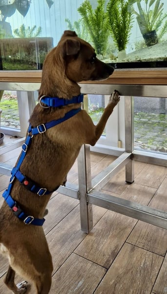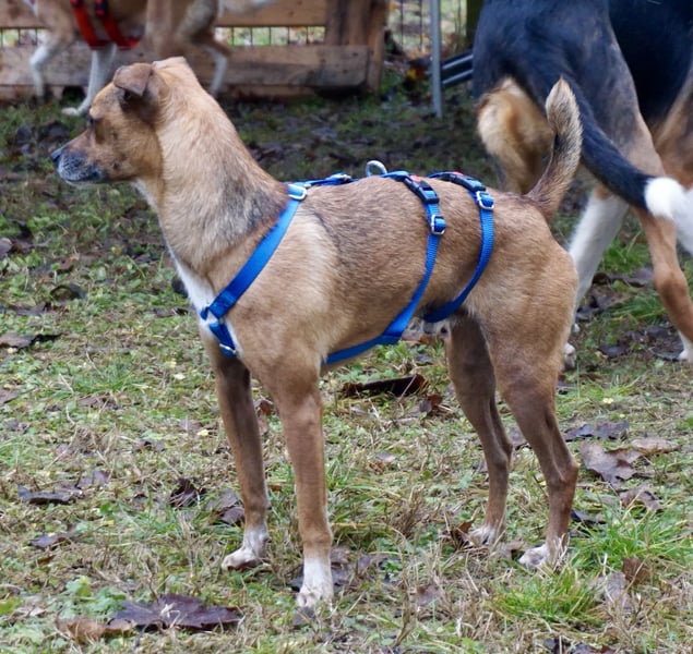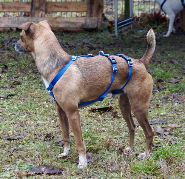 Er läuft super an der Leine, spielt gerne mit dem Menschen, ist sehr angeschlossen und super angenehm. Katzen sind so lala...je nach Katze (eher Aufregung als Jagdtrieb).