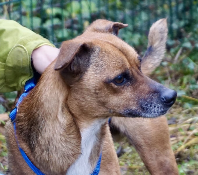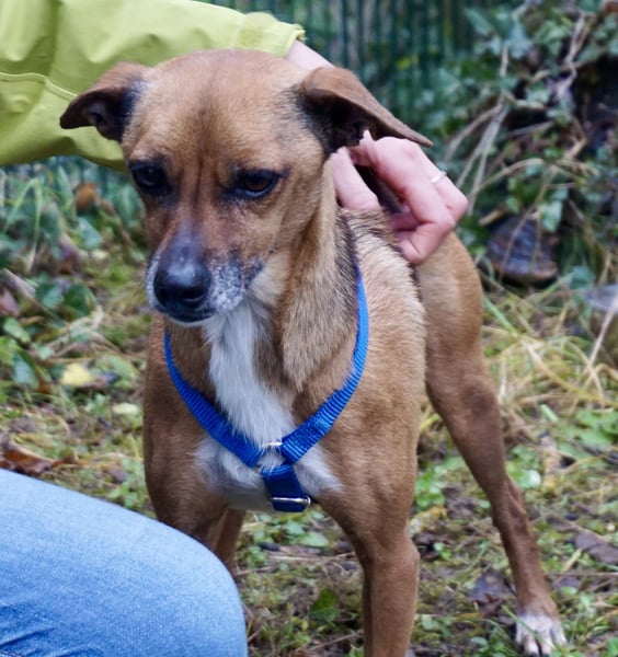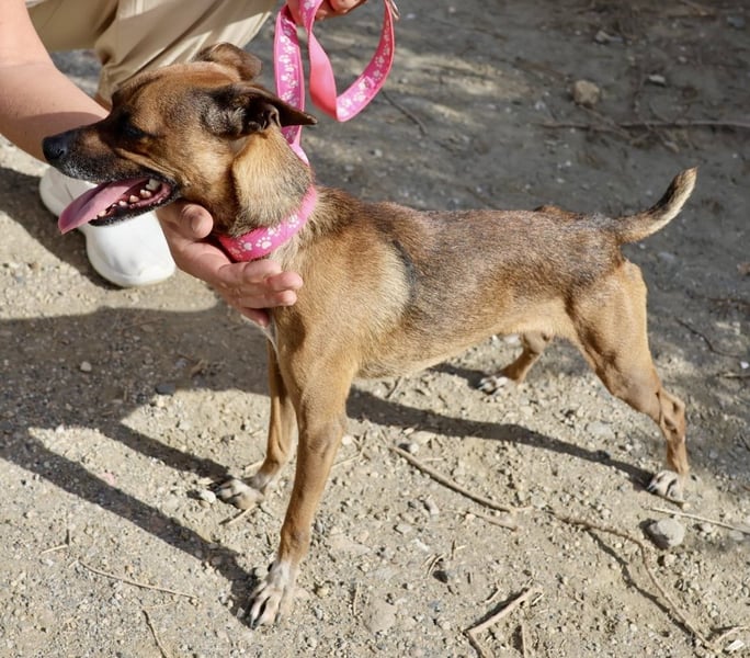 Floki (4430) Pinscher Mix Bub, geboren am 29.10.2022, hat eine Schulterhöhe von 40 cm und wiegt 4 kg.