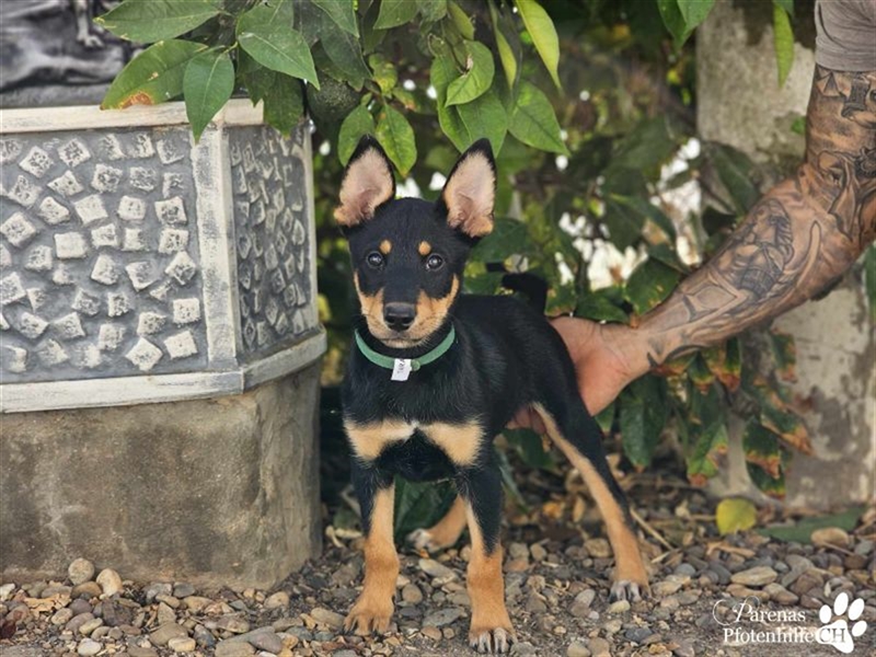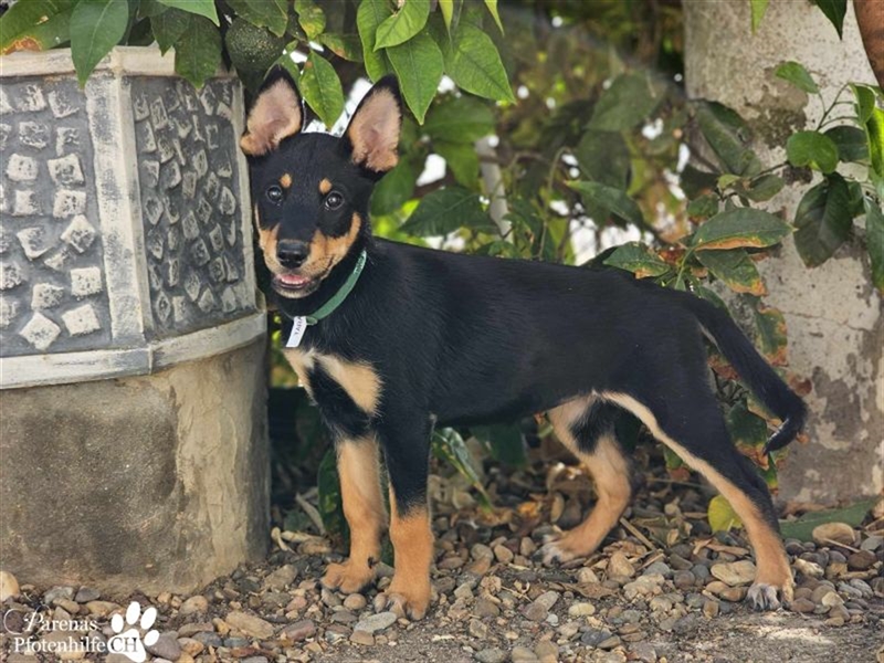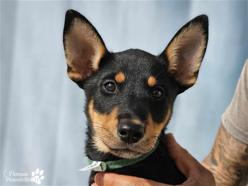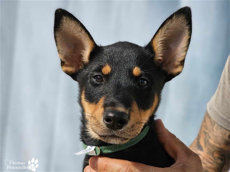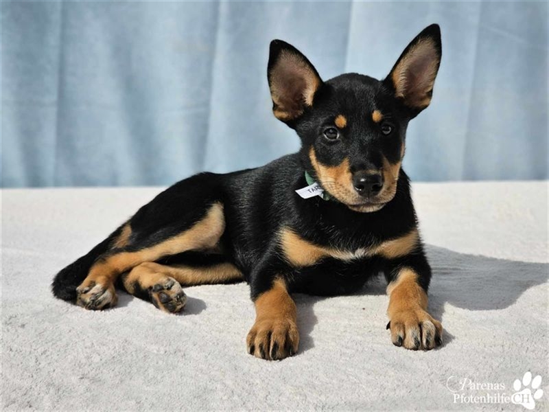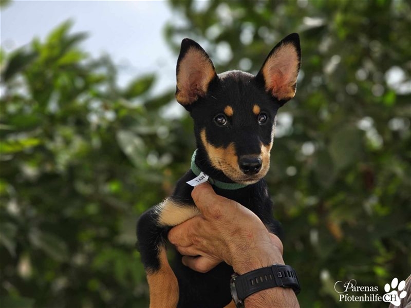 Tara hat ein zartes Wesen und ist ein Sensibelchen. Sie beobachtet lieber aus der Ferne, wie ihre Geschwister herumtoben. Gleichzeitig ist sie aber auch welpentypisch neugierig und verspielt. Tara liebt es zu kuscheln und ist verschmust, wird dabei aber niemals aufdringlich. Hundesport würde der jungen Dame sicher gut gefallen. 11.10.2024