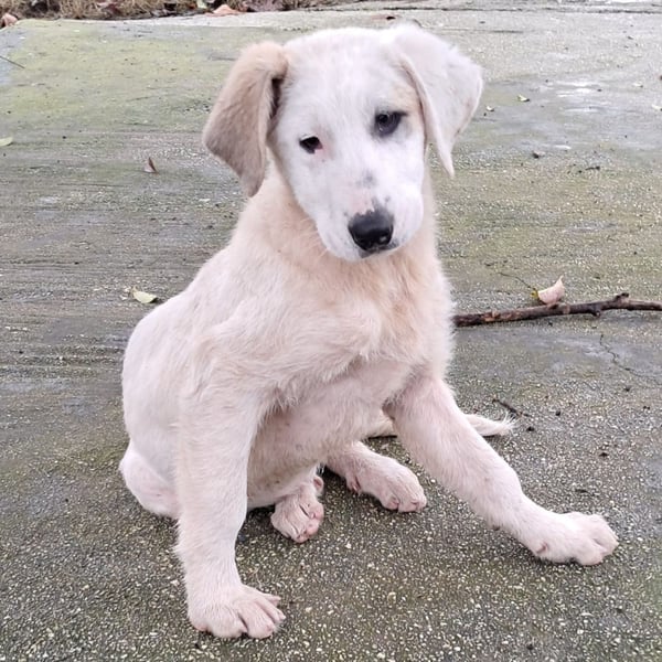 Thira wurde mit ihrer Schwester Skia ganz allein auf einem Feld gefunden. Keine Mutter, kein Schutz – nur zwei kleine Welpen, die sich selbst überlassen waren. Zum Glück wurde sie rechtzeitig von unserer Tierschützerin Christina entdeckt und in Sicherheit gebracht. Inzwischen durfte Thira nach Deutschland reisen und lebt seit dem 27.02.26 nun in einer liebevollen Pflegestelle in Bayern, wo sie Schritt für Schritt das Leben in einer Familie kennenlernen darf.