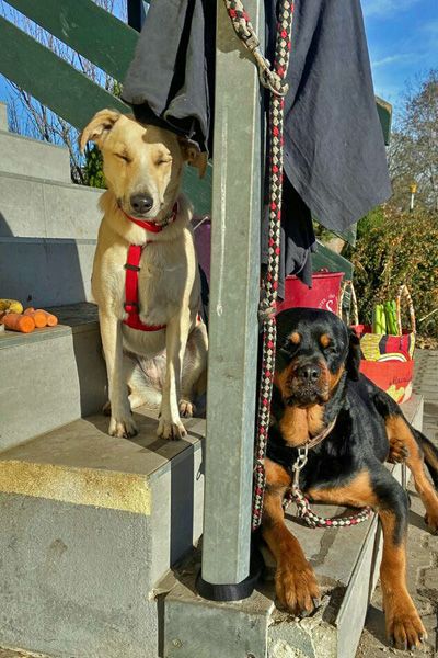 Wir bewundern dieses Hundemädchen, denn sie weiß eigentlich ganz genau, was sie will: eine Bezugsperson, die ihr Halt gibt, Rückzugsorte, aber gerne mit dabei sein, Schritt für Schritt neue Sachen kennenlernen und manchmal im Garten auch die kleine, wilde, superwitzige Ginny rauslassen, die in ihr schlummert.