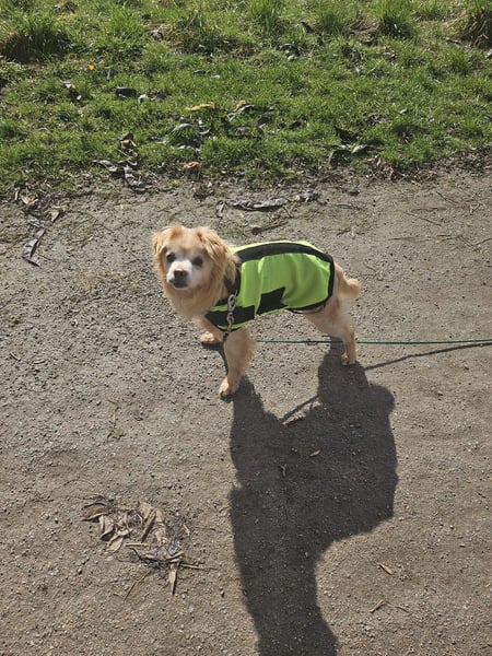 Der bezaubernde kleine Hundesenior Karl genießt in seiner Pflegestelle in 26286 Wilhelmshaven die Sonne im Garten, was dem kleinen Kerlchen sehr gut gefällt!