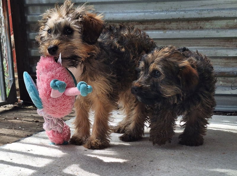 Die kleine Ella gehört zu einer Hundefamilie, die gemeinsam am Stadtrand entdeckt wurde.
